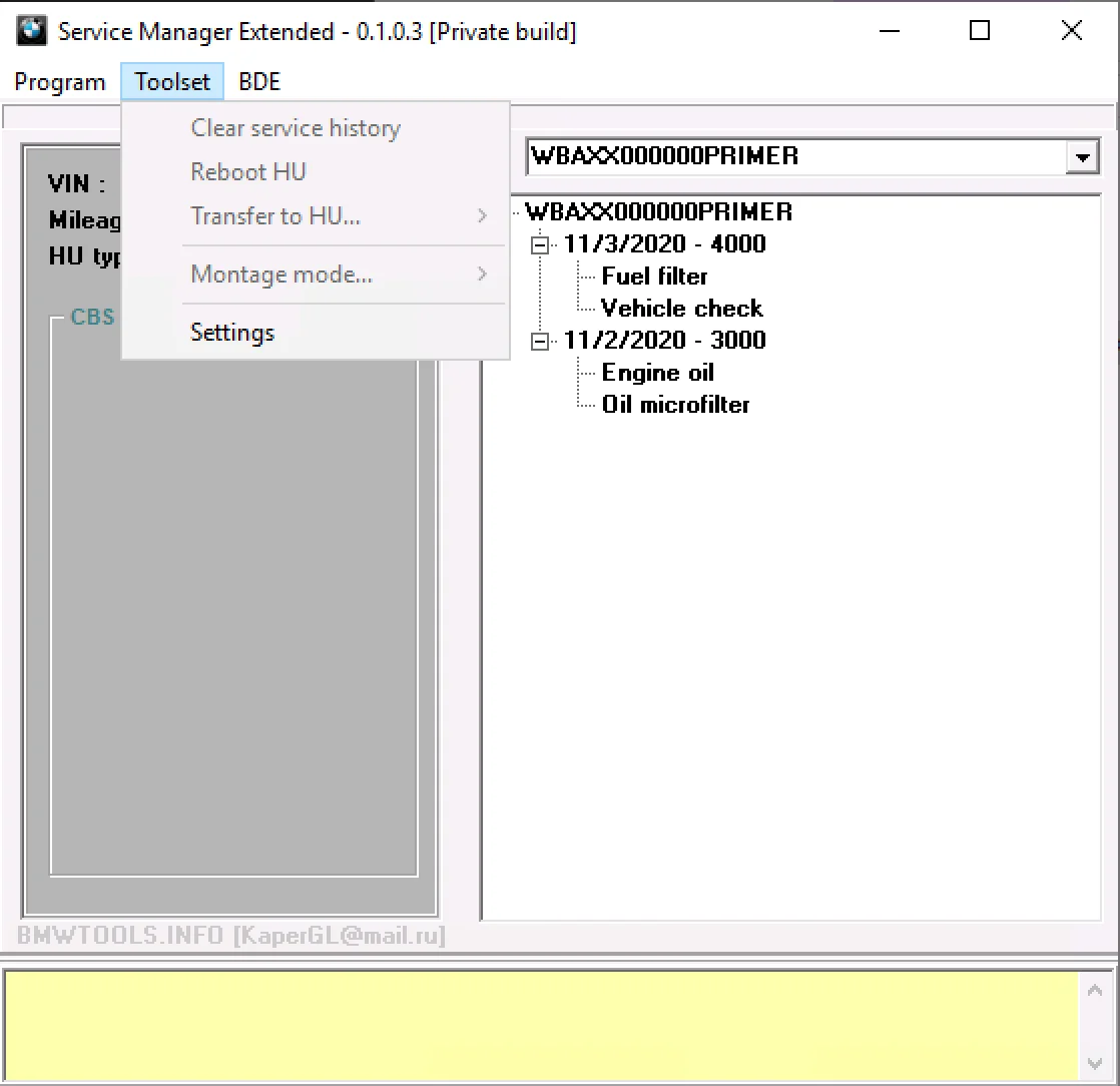 Service Manager Extended is a compact BMW utility for handling Head Unit service data. It lets you review Condition Based Service (CBS) entries, edit service records, and transfer them to the HU when needed.