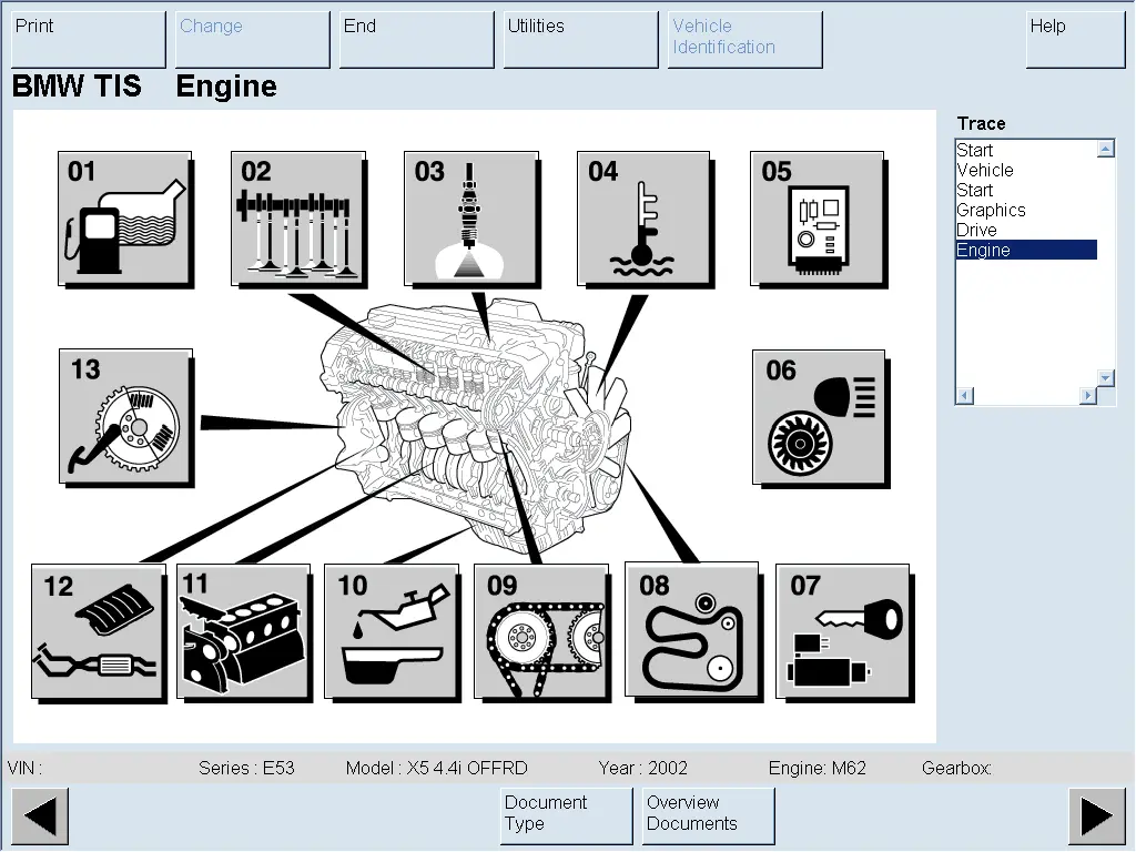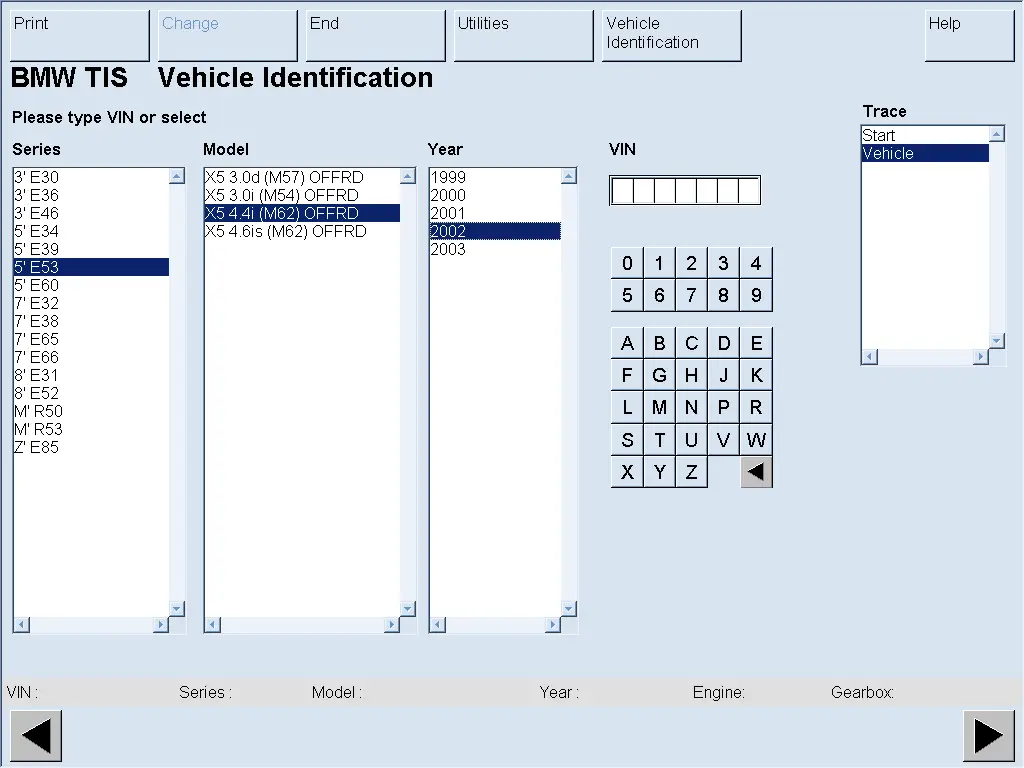 - Start the BMW TIS application, select the preferred language where available and identify the vehicle by VIN or model list