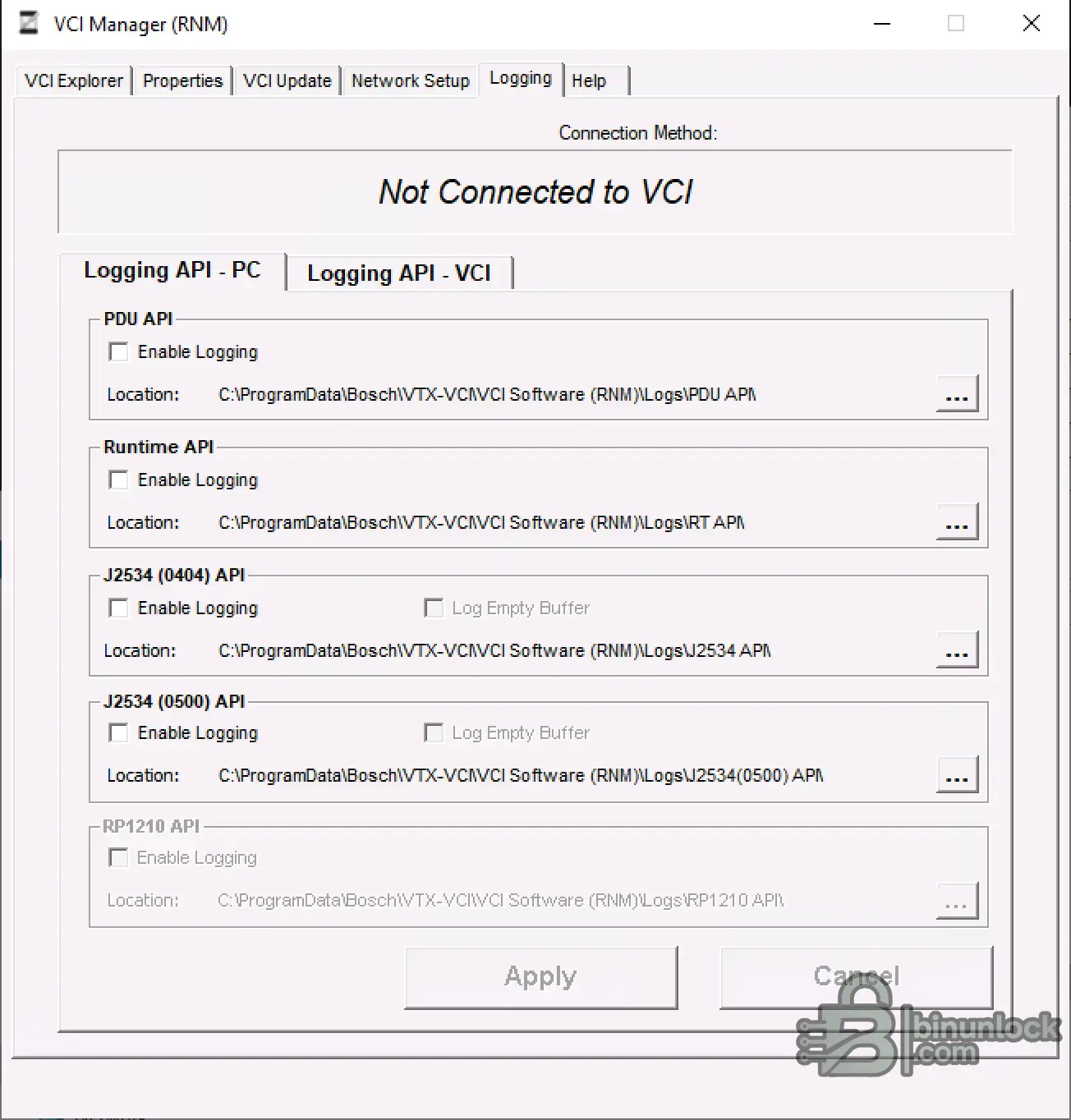 - Logging controls for PDU API, Runtime API, J2534 API profiles, and RP1210 API logging