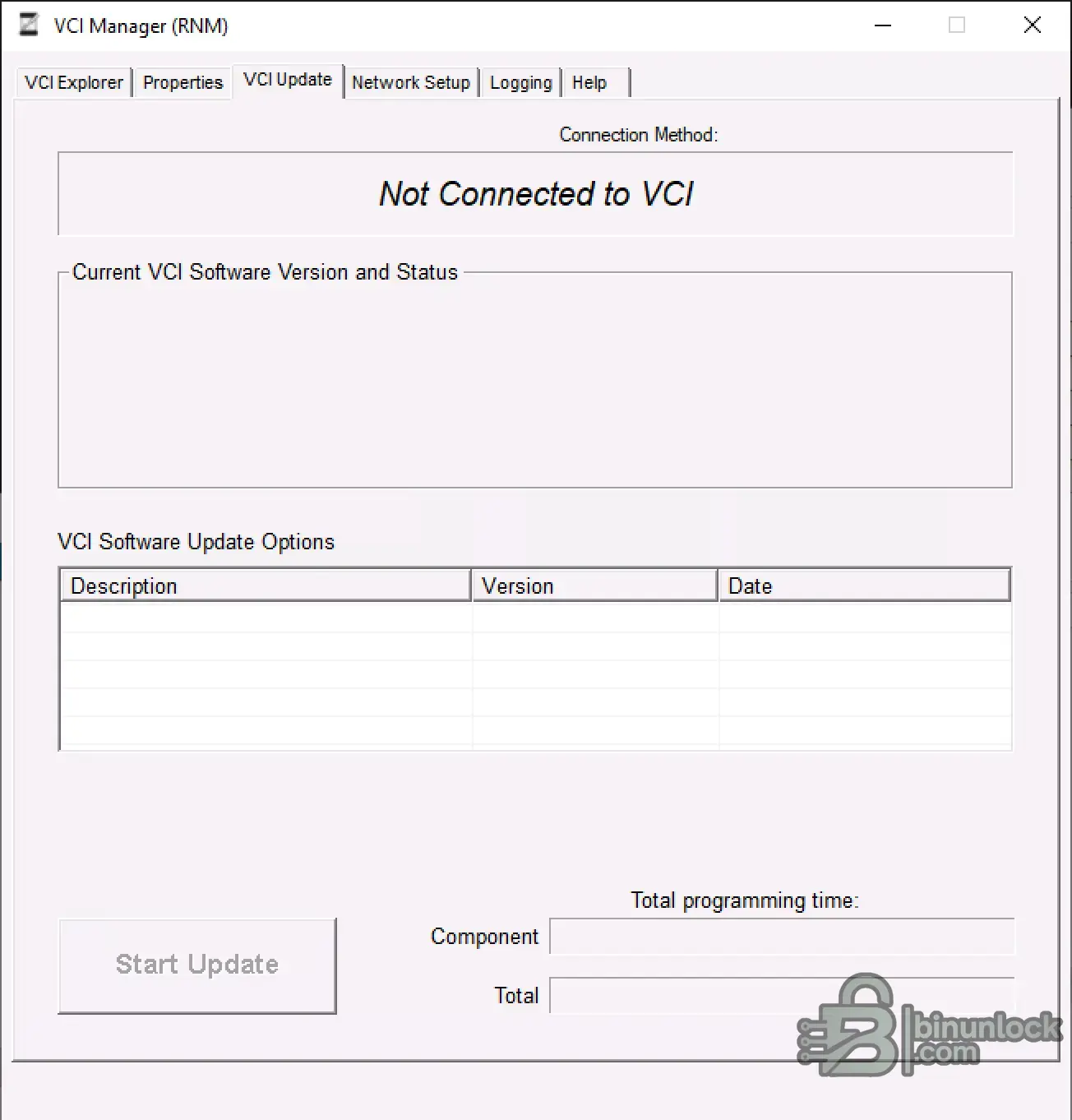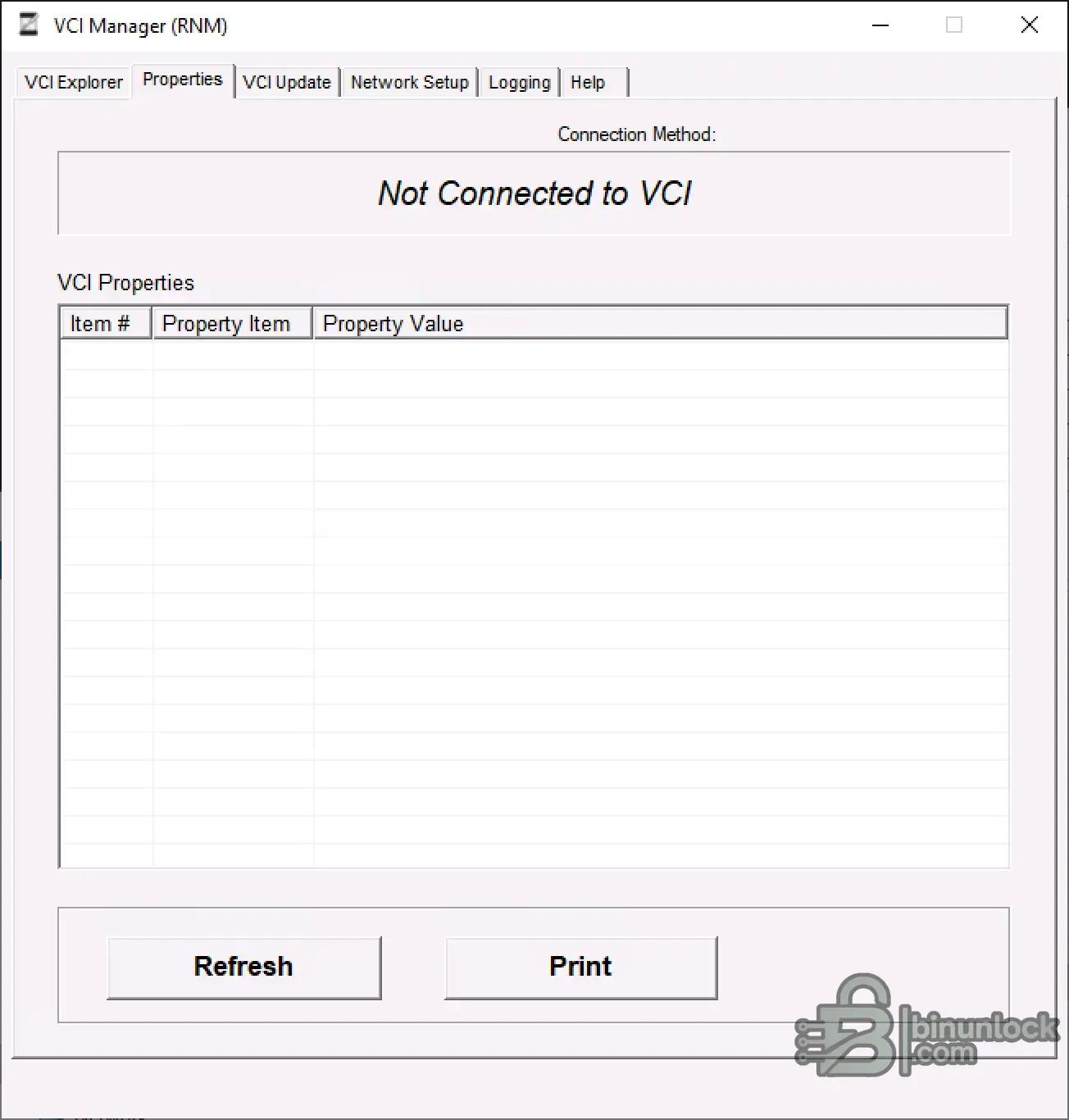 - Use Properties to review device details, then use VCI Update only when a device is connected.