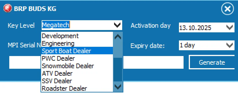 BRP B.U.D.S. (BRP Utility and Diagnostic Software) is an OEM diagnostic suite for BRP powersports vehicles. It helps workshops read faults, view live data, manage DESS key features and generate service reports in a preconfigured workflow.