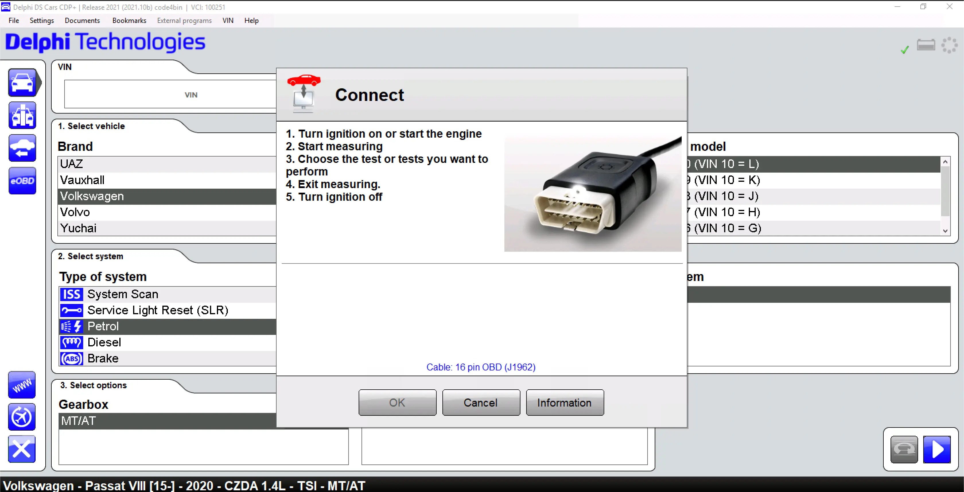 - Choose diagnostic device type (Type 1 – 2-board VCI / Type 2 – 1-board VCI).