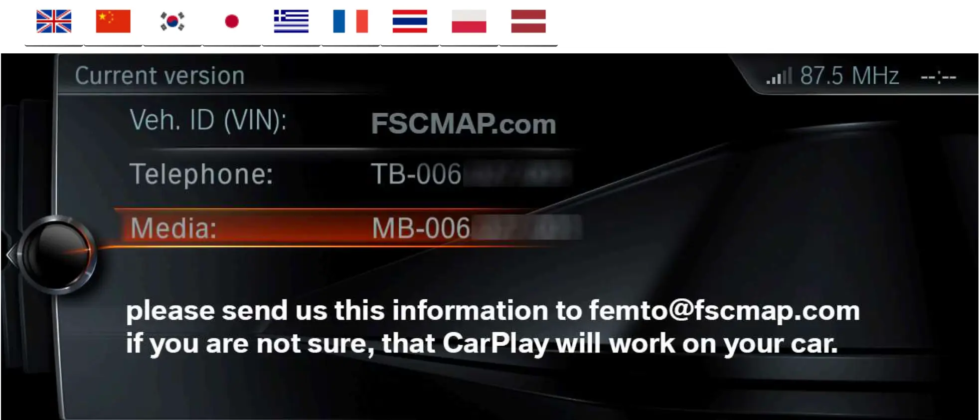 - Head unit type (NBT EVO vs MGU) and installed firmware level (I-level).