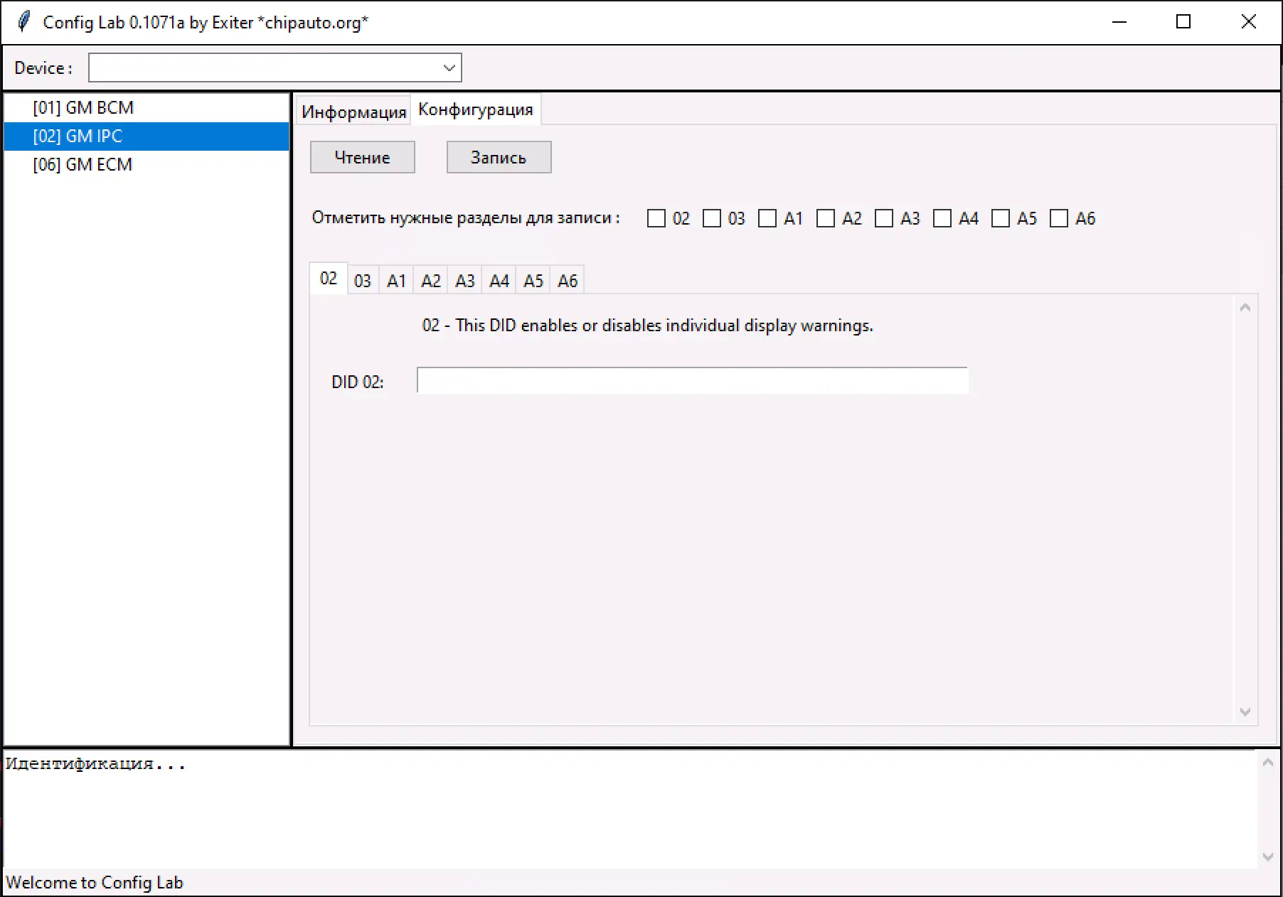 Config Lab 0.1071a is a Windows-based utility for working with identification and configuration data in General Motors control units.