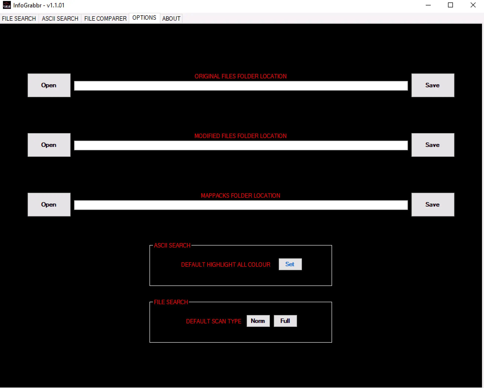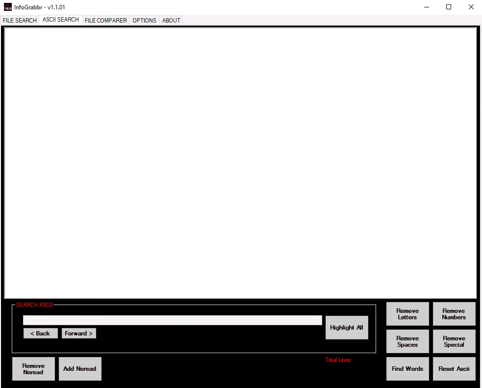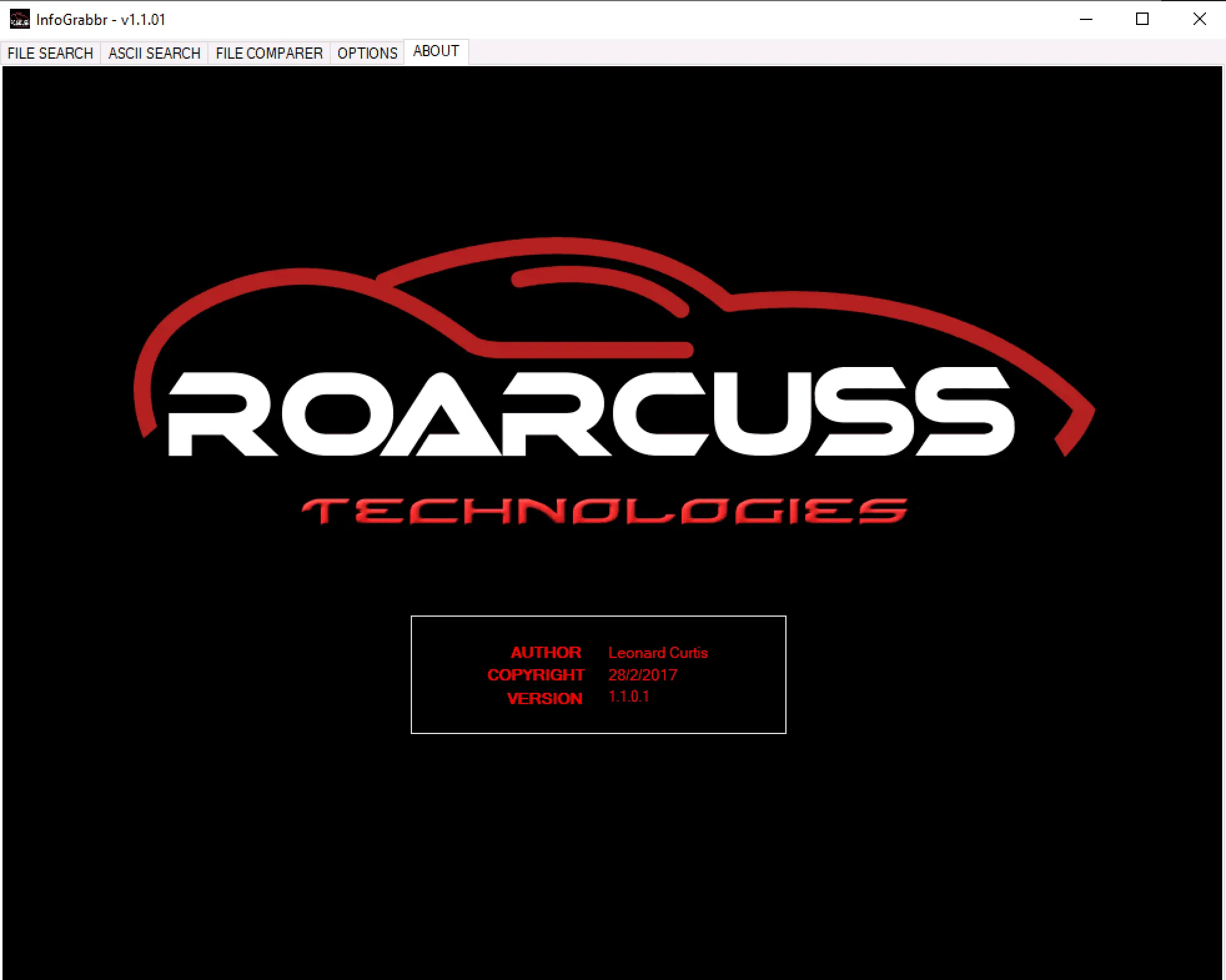 InfoGrabbr is an ECU information and file testing utility for calibration engineers and tuners. It helps analyze dump files, extract identifiers, scan ASCII content and compare originals to modified builds using a clean desktop workflow.