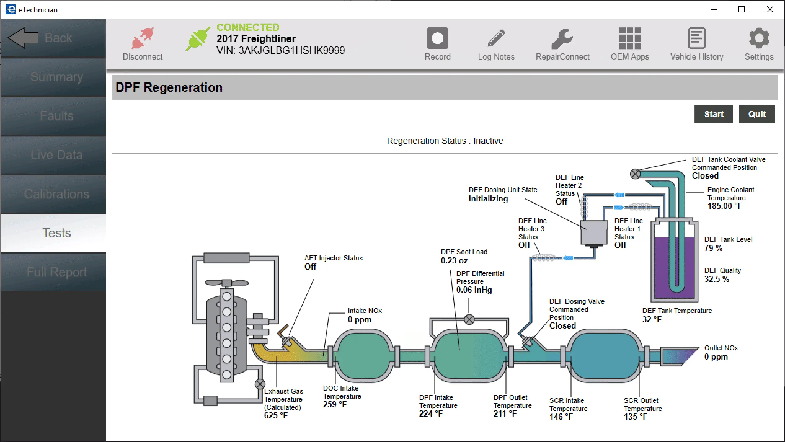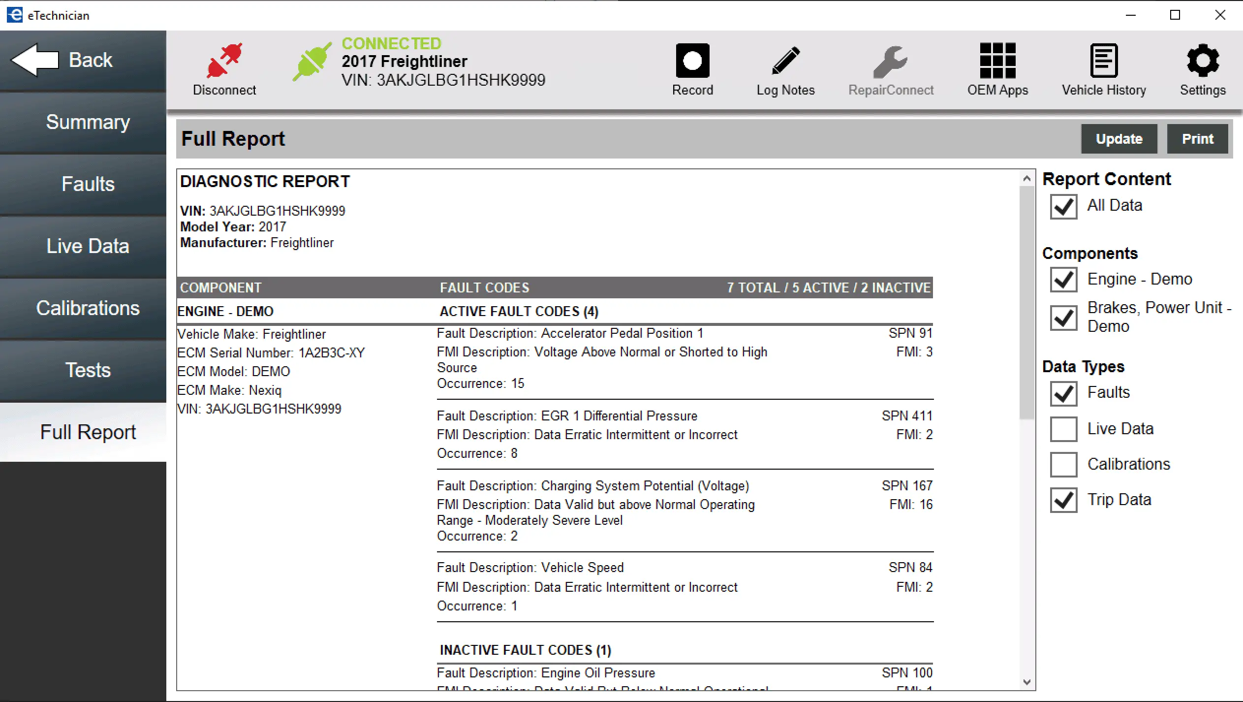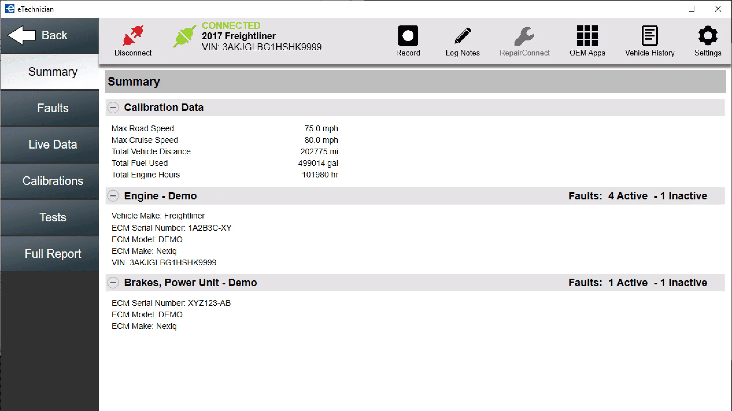 NEXIQ eTechnician is a Windows diagnostic suite for heavy duty and light/medium duty vehicles. It helps fleet and workshop technicians read faults, view live parameters, run service tests like DPF regeneration and create printable reports using a compatible RP1210 adapter.