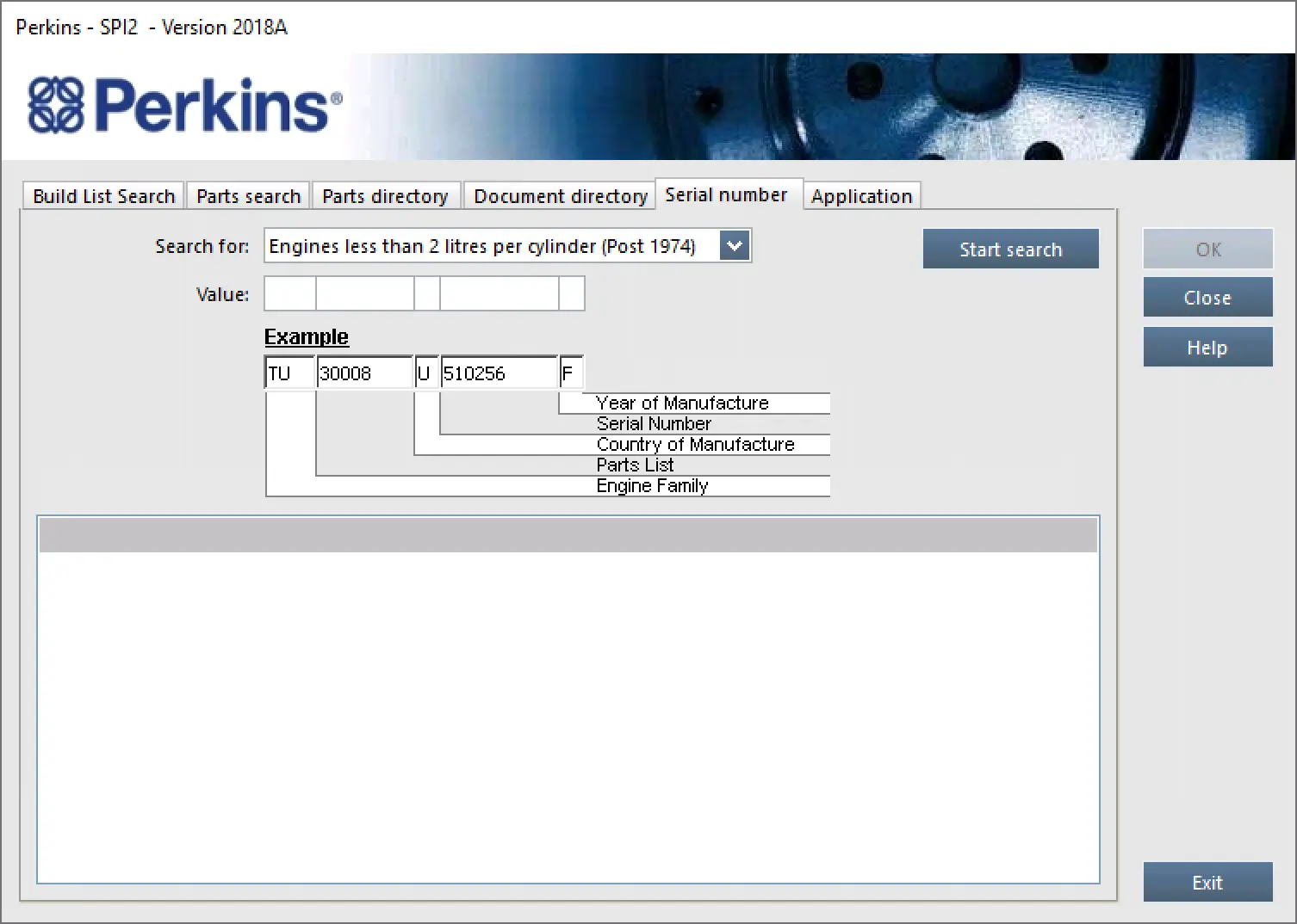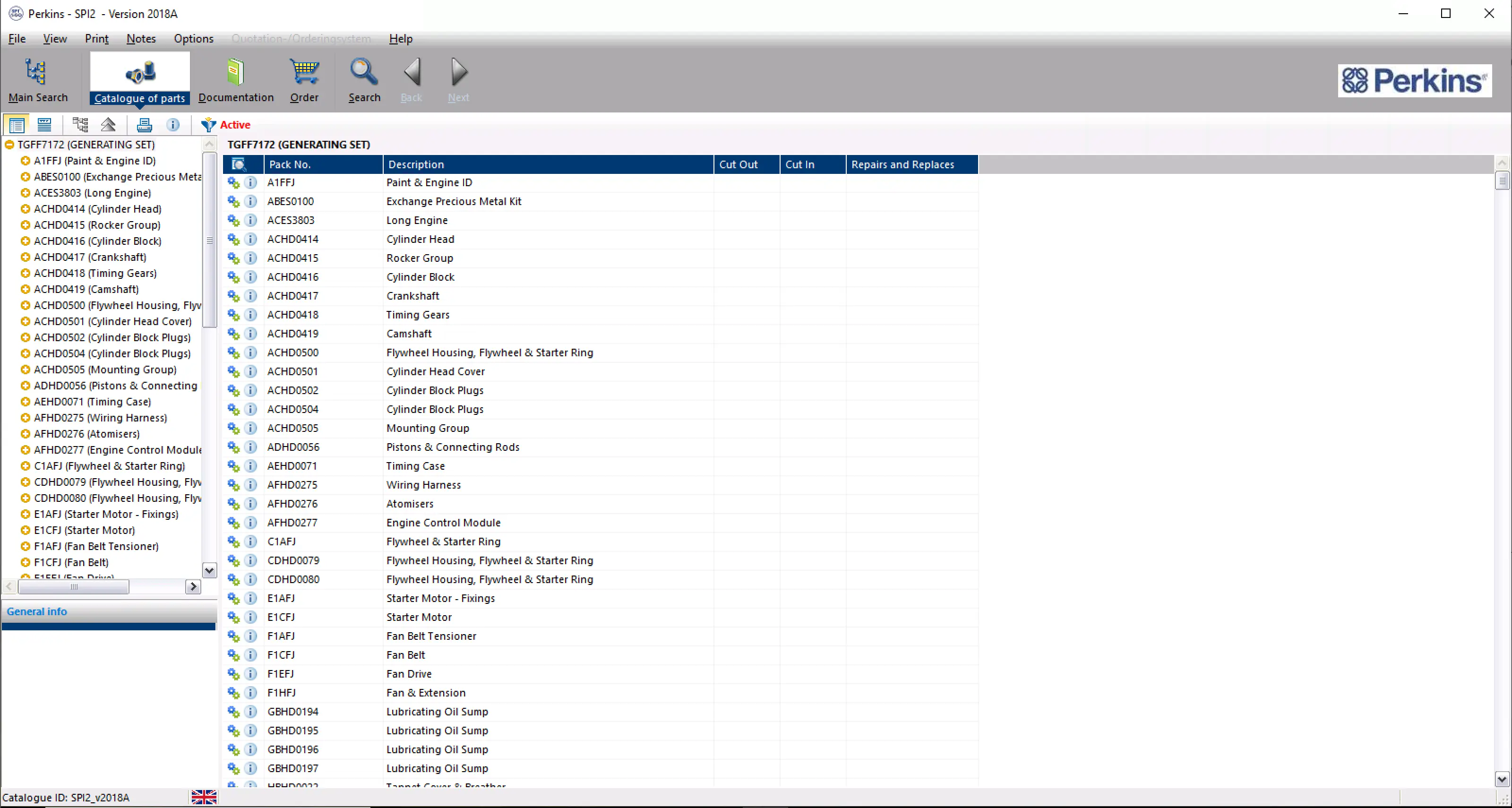 Perkins SPI2 (Service and Parts Information 2) is a service and parts reference platform for Perkins engines used in industrial equipment, power generation, and related applications. It helps technicians identify the correct build list and parts information by serial number, then navigate parts catalogues and workshop documentation from one interface.