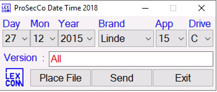 ProSecCo is a small toolkit used around older forklift diagnostic software. It focuses on (1) date/time compatibility for applications that expect a specific service date and (2) basic registration data handling. Typical use is lab, training and legacy evaluation.