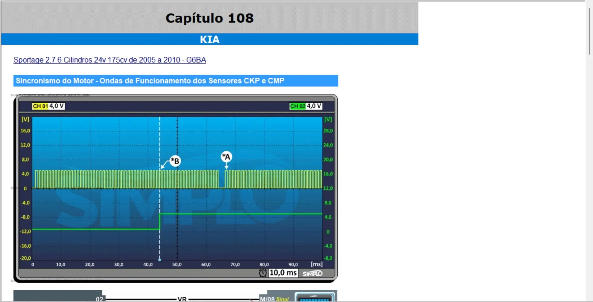 - Oscilloscope reference waveforms and timing examples for key sensors