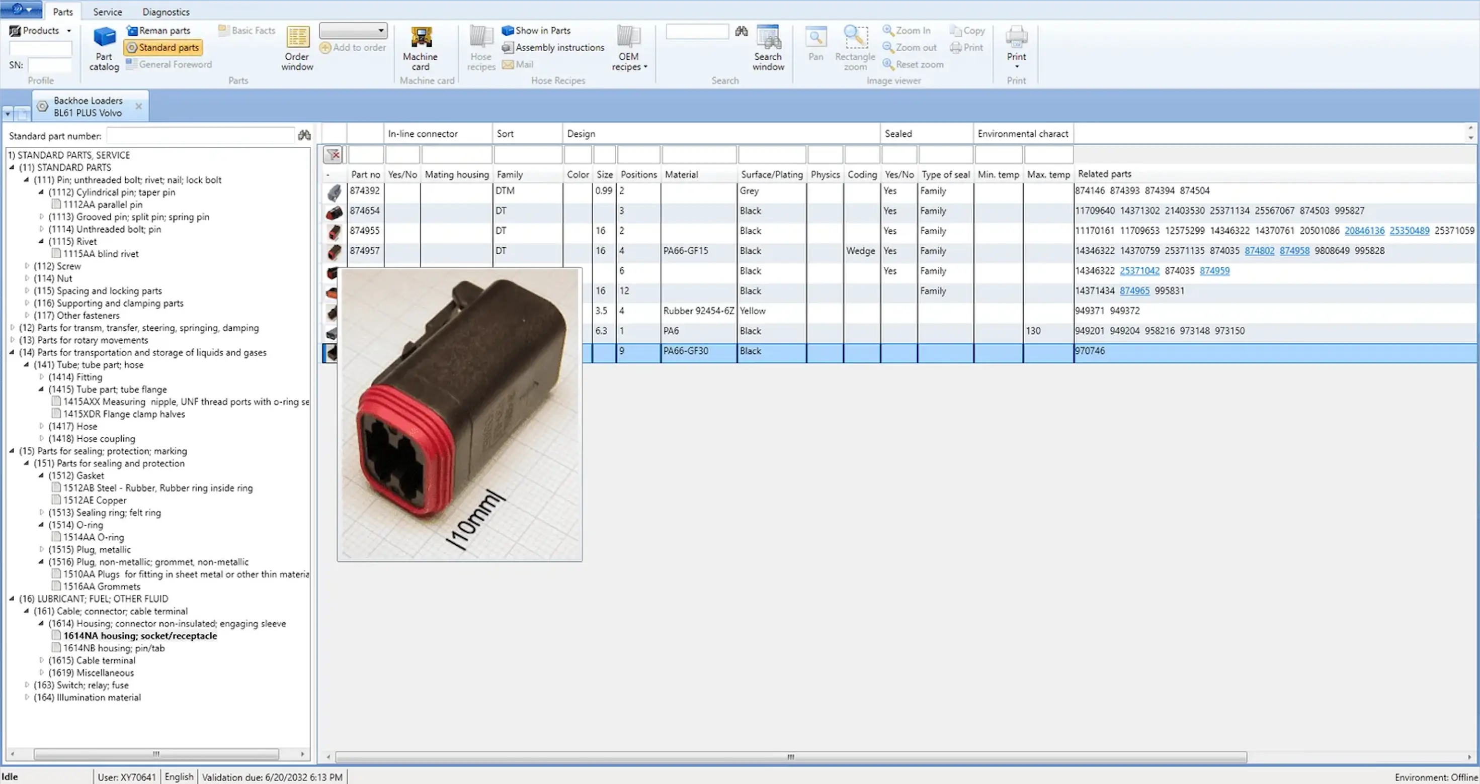 - Attachments & Standard Parts: Buckets, quick couplers, hose recipes, seals, electrical connectors, service consumables.