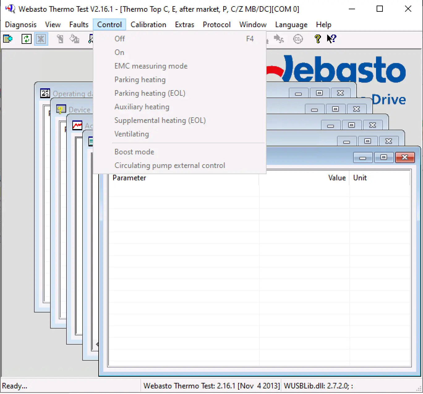 Webasto Thermo Test is designed for PC diagnosis of Webasto air and water heaters that support a diagnostic interface. Depending on the version used and the heater generation, WTT can communicate via W-Bus, K-Line or a dedicated Webasto USB/serial interface.