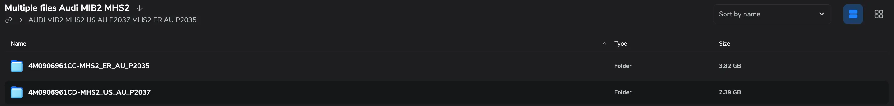 US & EU firmware pack for Audi MIB2 MHS2 4M0906961CC/CD P2035 P2037 full vеrsiоn update setThis package contains two complete firmware datasets for Audi MIB2 MHS2 infotainment units, extracted from original SD update media. Both regions – EU (ECE) and US (NAR) – are included with full vеrsiоnmetainfo2.txtmanifests and allupdate61858-xxx.datsegments.