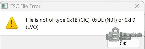 The simple "FSC Reader" program is usually hardcoded to look for the NBT file (DE). When it tries to read your car, it looks for DE, doesn't find it, and errors out.
