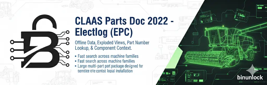2022 (Update 688) - Offline EPC catalog, exploded views, part numbers, fast searchCLAAS Parts Doc is an electronic parts catalog (EPC) designed for parts identification, exploded diagrams, and part number lookup across CLAAS agricultural machines. This 2022 data set is delivered as a multi-part offline installer and is intended for workshop reference and parts counter workflows.
