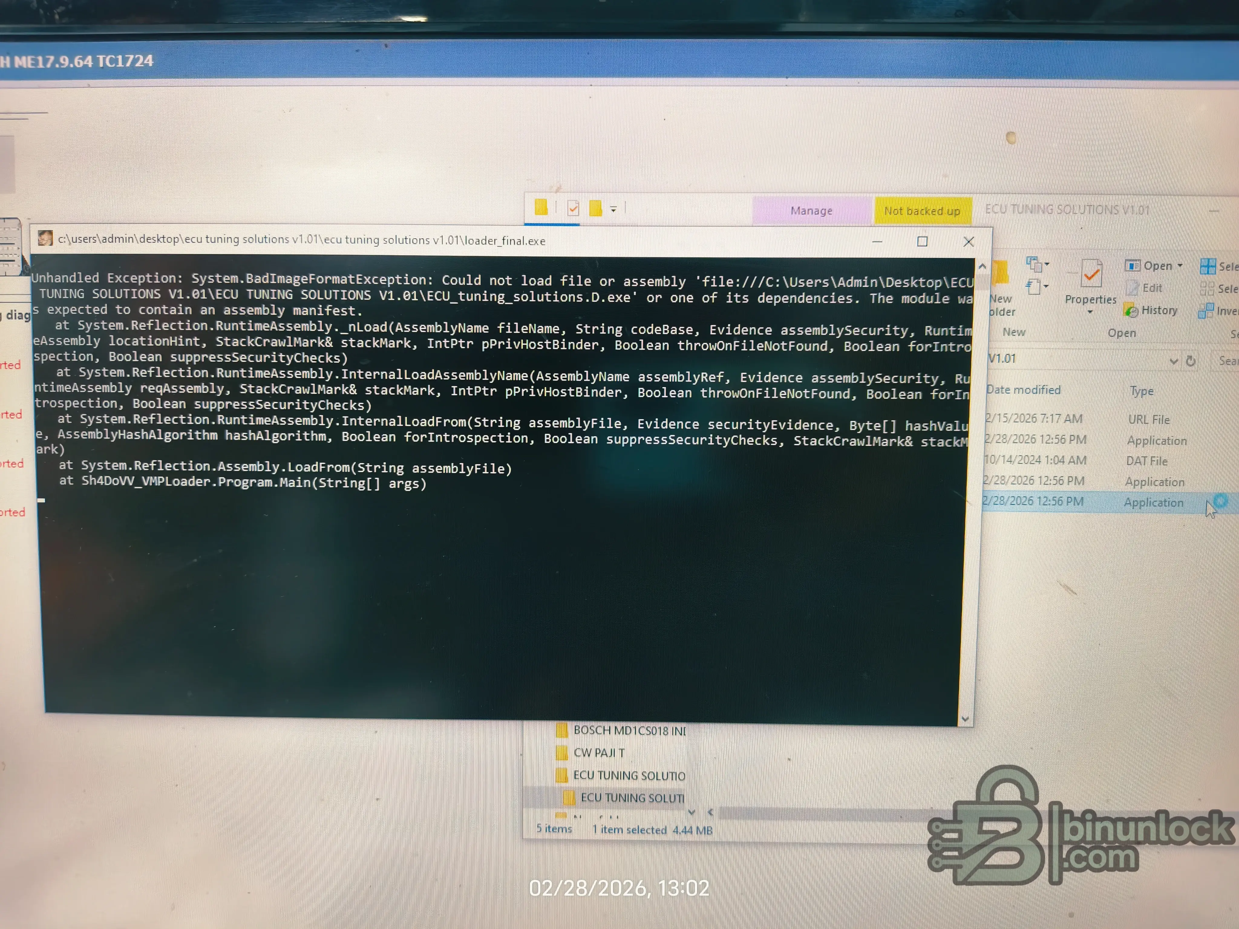 key.dat file is often a target.C:\tuning tool\ECU TUNING SOLUTIONS V1.01\ folder.C:\ECU_Temp.C:\ECU_Temp.Loader_Final.exe and select "Run as administrator". Let it finish.ECU_tuning_solutions.D.exe from the C:\ECU_Temp folder.C:\ECU_Temp folder to your exclusions.key.dat / Loader: The key.dat file might be for a different version of the software, or the Loader_Final.exe itself might be corrupted or incomplete.I tried to install it on my two laptops but it still failed, it shows this error. Windows 11Bro,