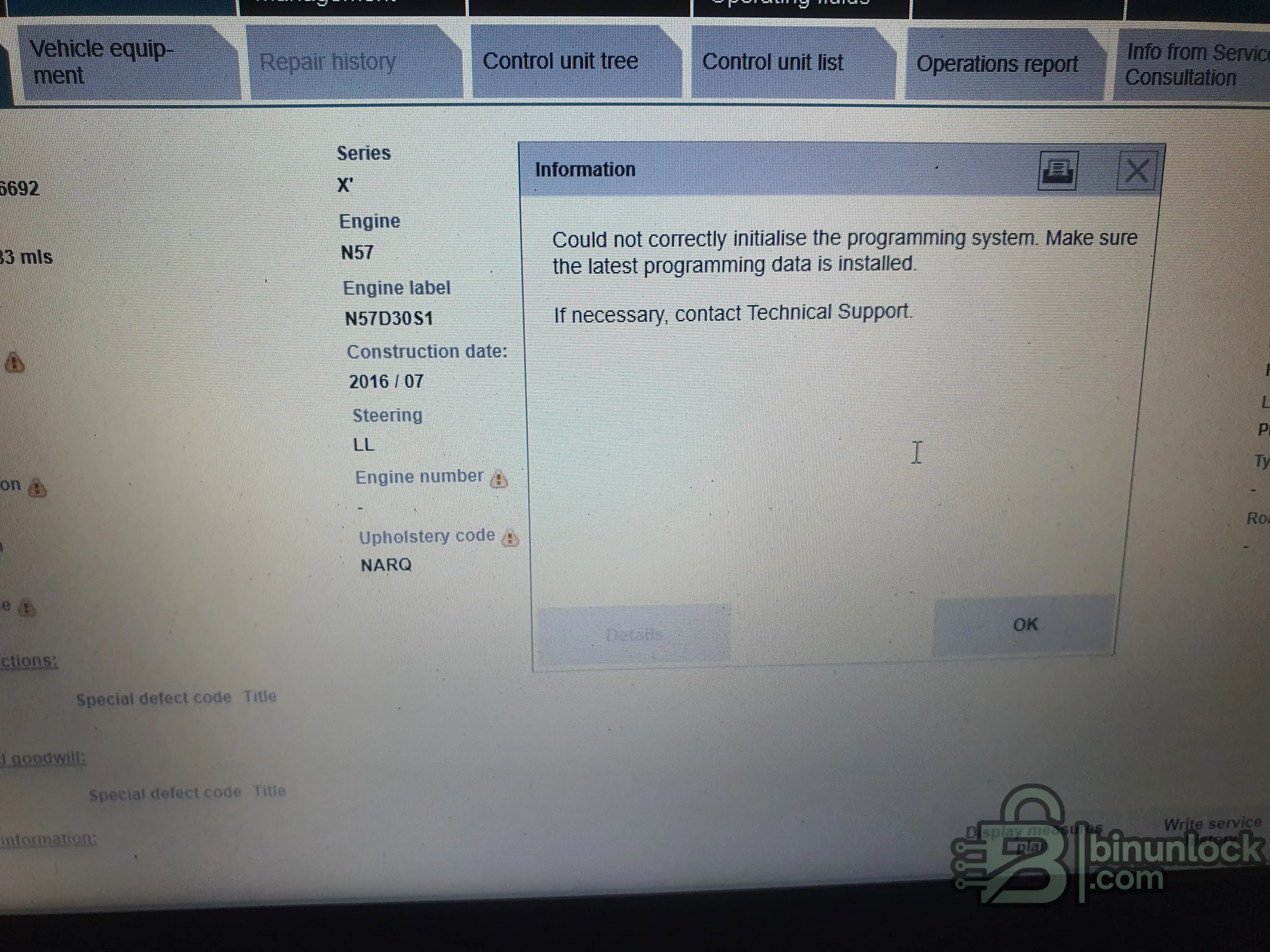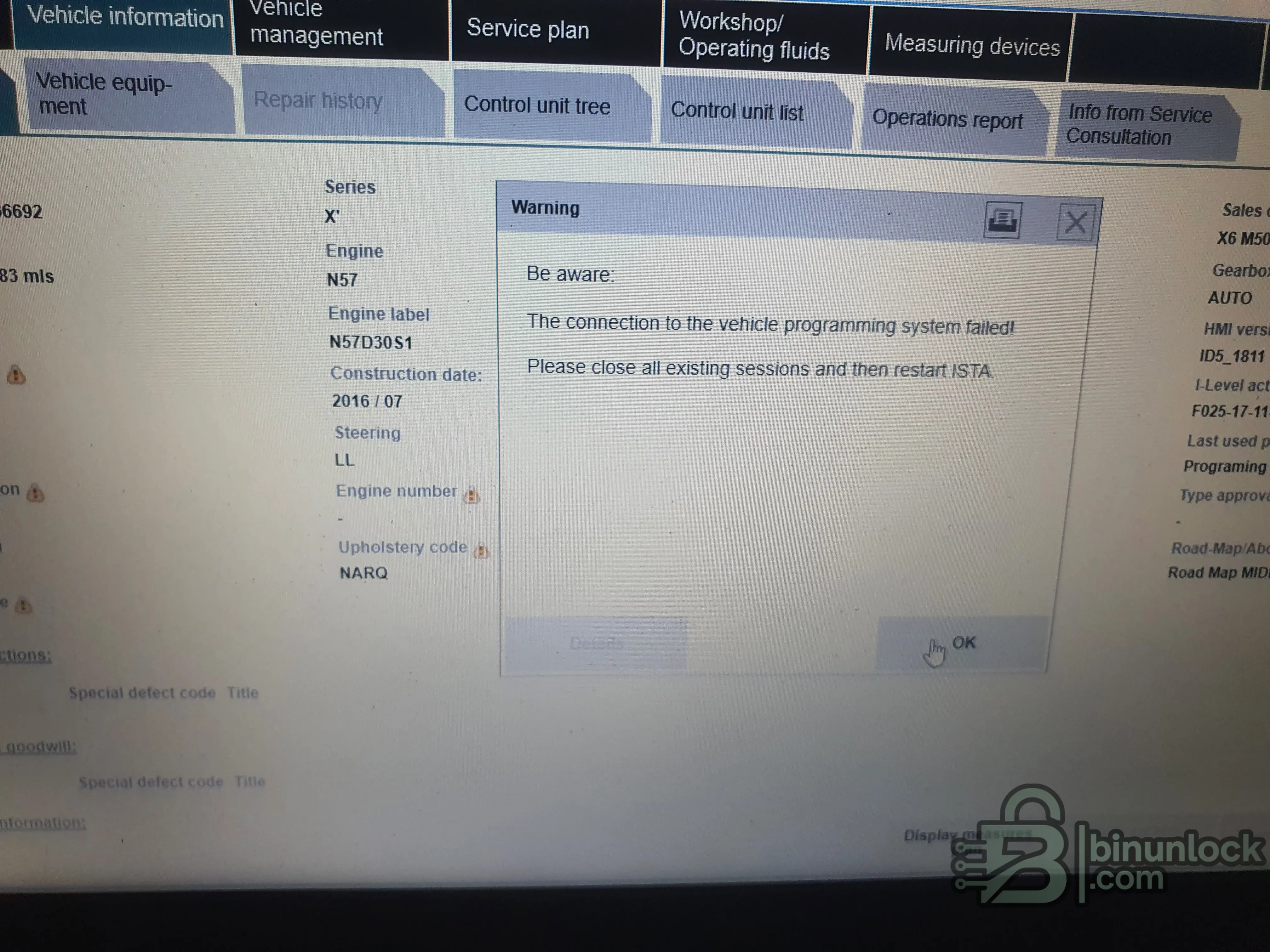 An unexpected fault occurred. The vehicle session cannot be continued. BMW support must be contacted.